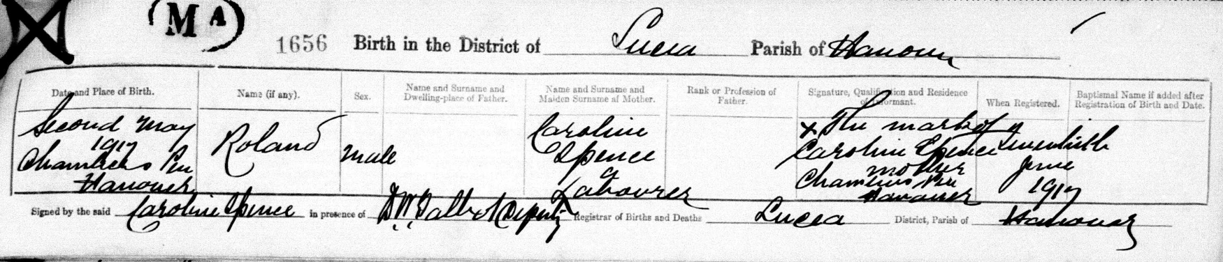 1917: POSSIBLE birth of Roland Spence (TBC).