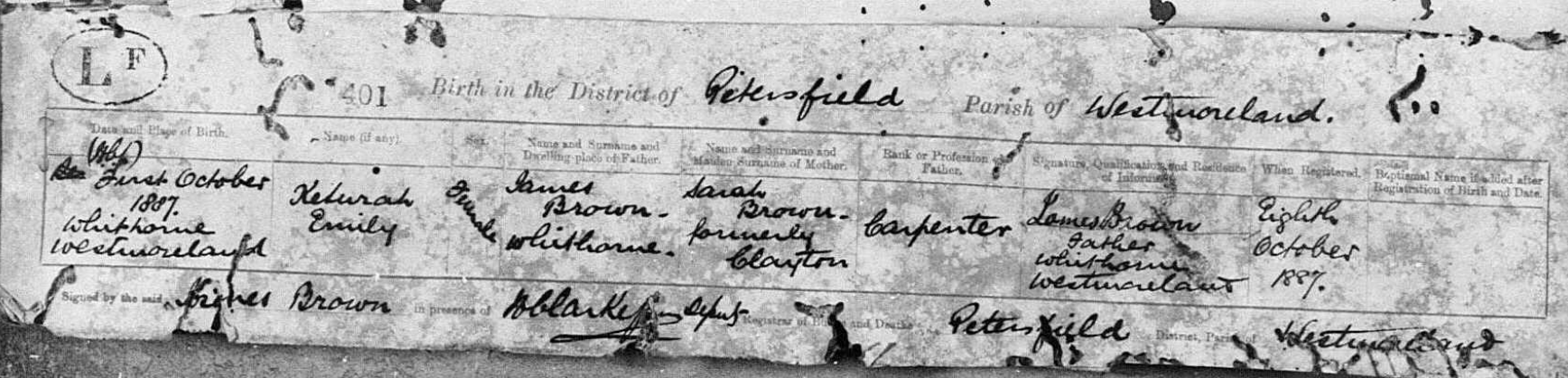 5. Mother: CAMPBELL. DOB btw 1896 - 1900, Westmoreland.